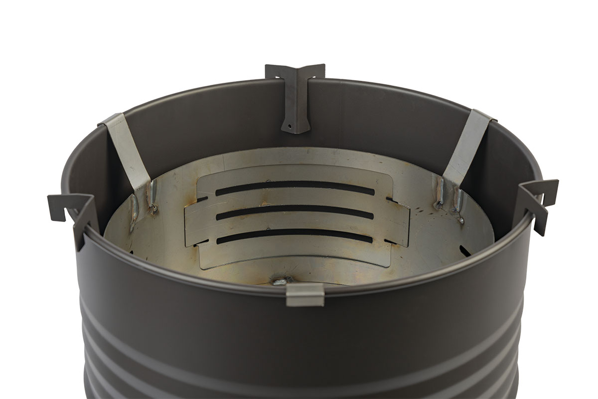 Für den sicheren und materialschonenden Betrieb empfehlen wir die Nutzung eines Feuerkorbs #15, um übermäßige Hitzeentwicklung im Inneren zu verhindern.